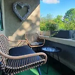 The apartment offers guests a balcony, a living room, and a fully equipped kitchen and overlooks the garden.